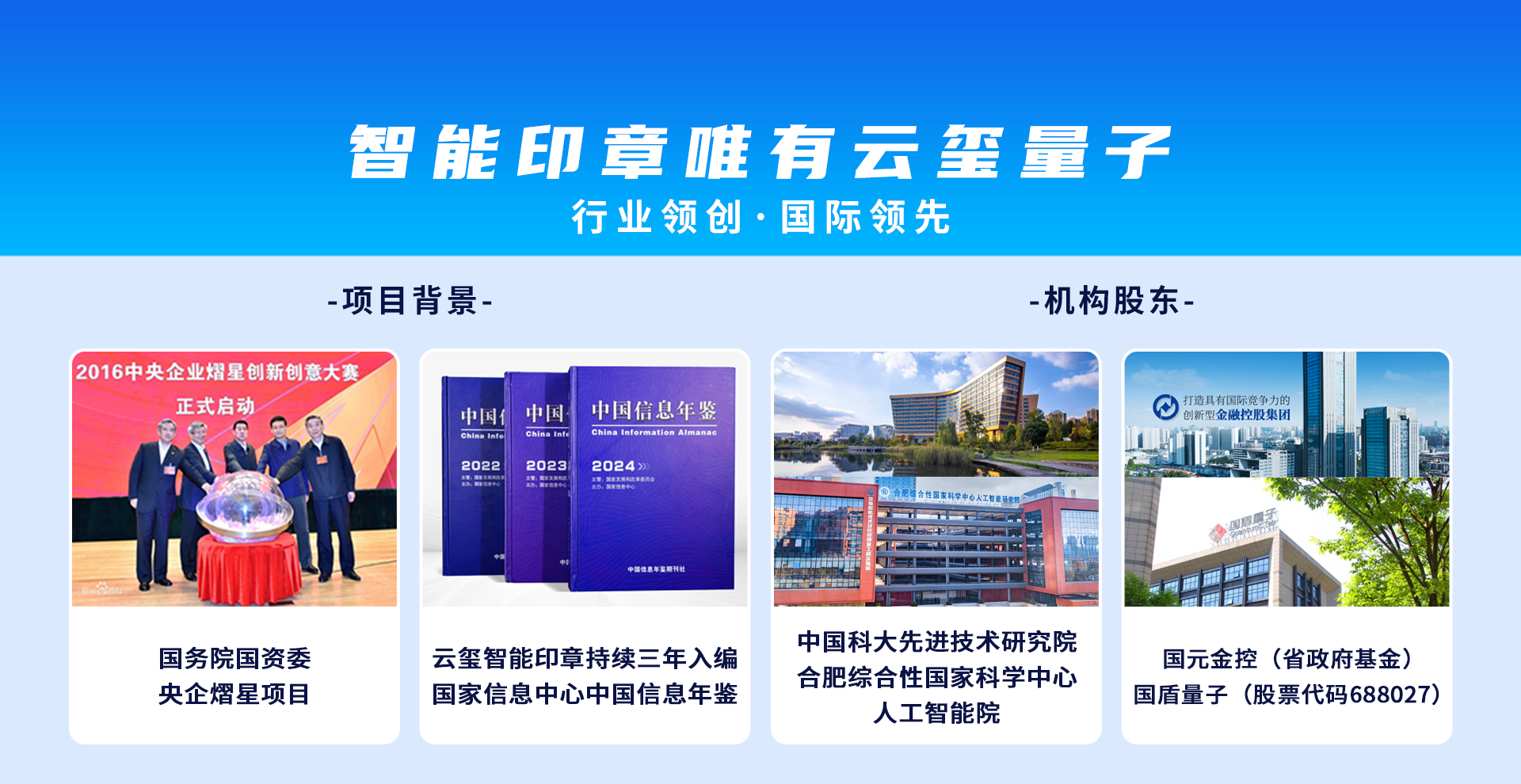 云璽量子是合肥市量子信息產業(yè)重點企業(yè),國家信創(chuàng)工委會成員企業(yè),中國信創(chuàng)500強企業(yè)。主營業(yè)務包括量子安全智能印簽、量子安全智能辦公、量子安全云服務,為政企客戶提供量子安全整體解決方案。